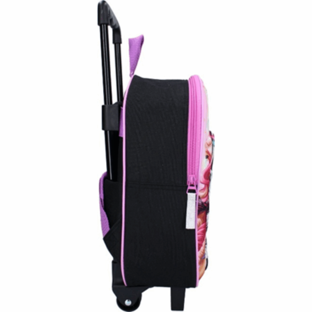 Dieser Trolley-Rucksack ist mit sanft rollenden Rädern und einer ausfahrbaren Zugstange ausgestattet, sodass Kinder die Tasche leicht hinter sich herziehen können. Das ist besonders nützlich, wenn der Rucksack stark beladen ist. Zusätzlich gibt es verstellbare Schultergurte, sodass die Tasche auch bequem als Rucksack getragen werden kann. Das Hauptfach lässt sich mit einem stabilen Reißverschluss schließen und bietet viel Platz für Schulsachen, während die kleinere vordere Tasche ideal für kleinere Gegenstände wie ein Federmäppchen, Schlüssel oder Snacks ist.