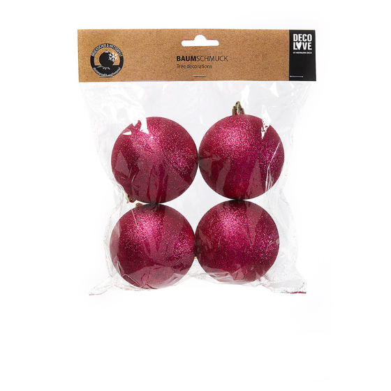 Verleihen Sie Ihrer Weihnachtsdekoration mit diesem Set aus vier roten Glitzer-Weihnachtskugeln einen warmen und festlichen Look. Das tiefe Rot in Kombination mit einem feinen Glitzerfinish sorgt für einen luxuriösen und funkelnden Effekt, der sofort in Ihrem Weihnachtsbaum auffällt. Diese Ornamente sind ideal, um eine klassische Weihnachtsatmosphäre zu schaffen, passen aber auch perfekt in moderne und elegante Innenstile.